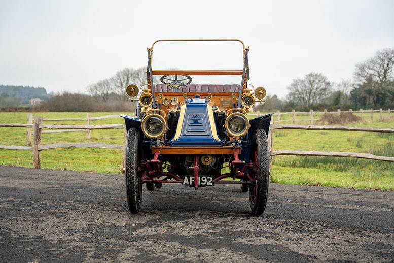 ‘AF192’ presents as an excellent example of a 1903 10HP Renault, with Veteran Car Club Dating Certificate, Windscreen and Electric starting. French twin cylinder cars of these quality are rare to find and this vehicle has been known to us for the past 3 custodians. Maintained with no expense spared via NP Veteran Engineering, AF192 was last serviced in December 2024 at which point a full rear axle rebuild was undertaken including new differential planet gears, halves shafts and bearings. The car was coach painted in its current Royal Blue in 2023 by Tom Parrott and presents wonderfully today.